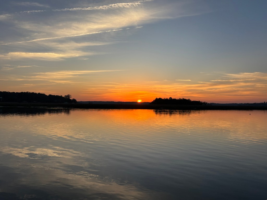 Another beautiful sunrise, but going to have a late start. Waiting on a mechanic to look at the steering on the upper helm.