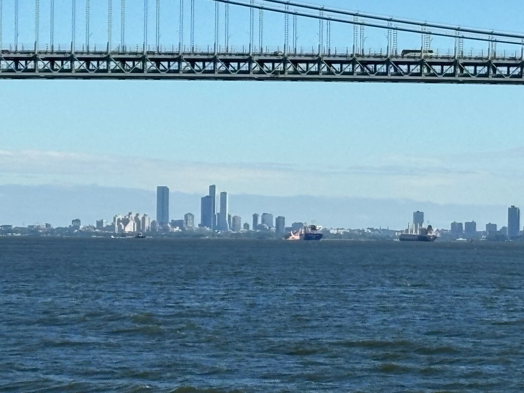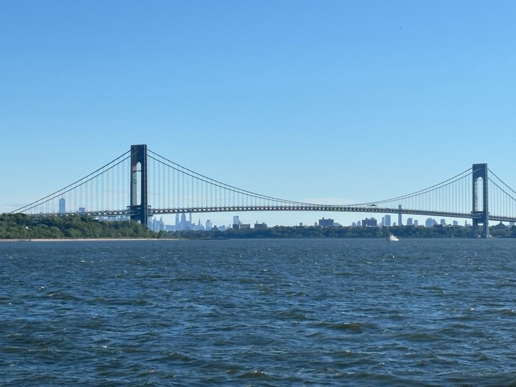 Small craft advisory for the next 36 hours, but that’s not stopping us! The commercial boat captain told us as long as we leave really early to cross the Raritan Sound we should be okay. The weather was super snotty, and we sprayed sea water over the Bridge a couple of times, but we pushed across until we could get out of the fetch/wind formed waves. Then under the Veranzo Bridge into the Harbor.