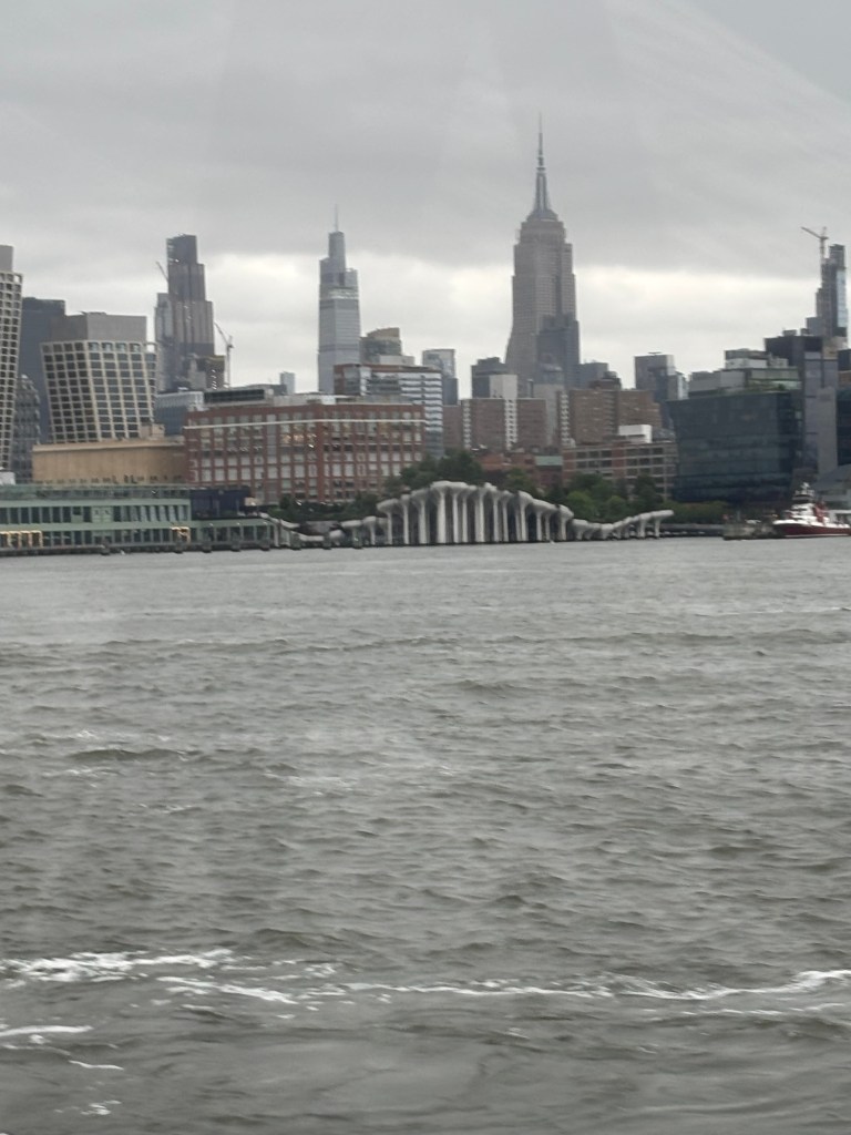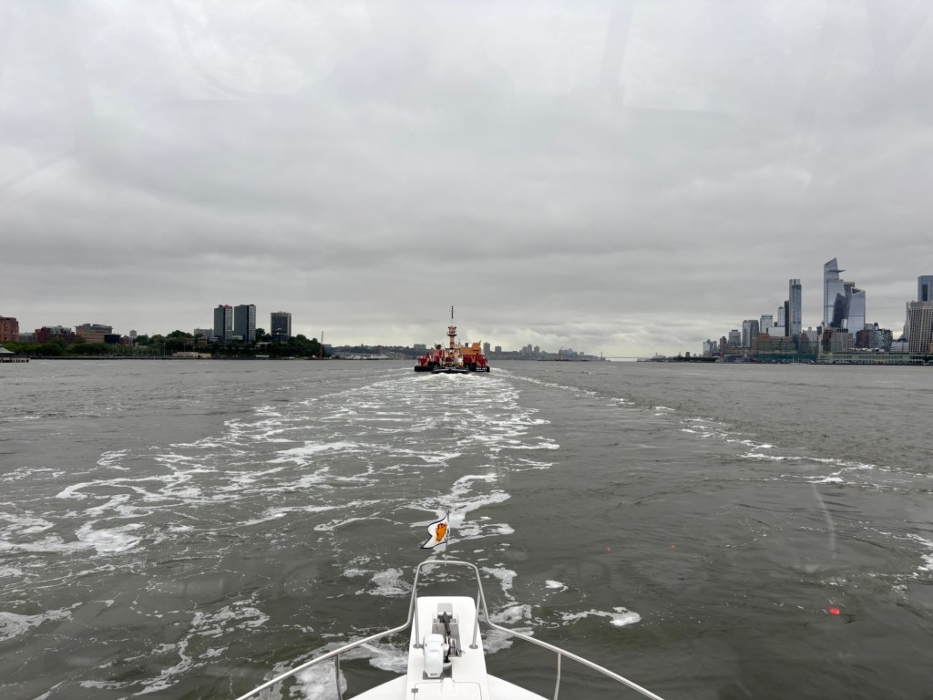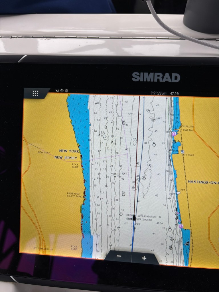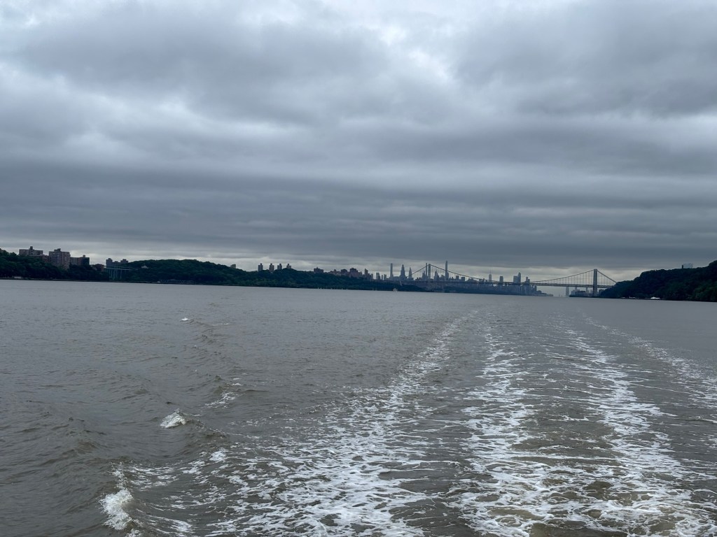 Got out early to try and miss the rain. As we entered the Hudson River from our marina and there was a tow boat pushing a 200 foot barge up the river we pulled out and who would have guessed his comfortable speed was the same as ours. I finally settled in behind the tug at 6.5 knots. After an hour I was done with following and we pick up speed headed up river. We had an easy travel day, and we able to get into Half Moon Bay Marina in Croton on the Hudson before noon. The rain started about noon and isn’t supposed to stop until Friday.