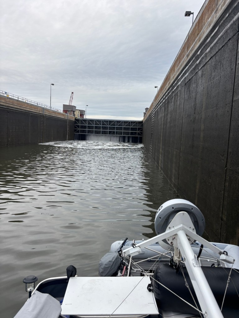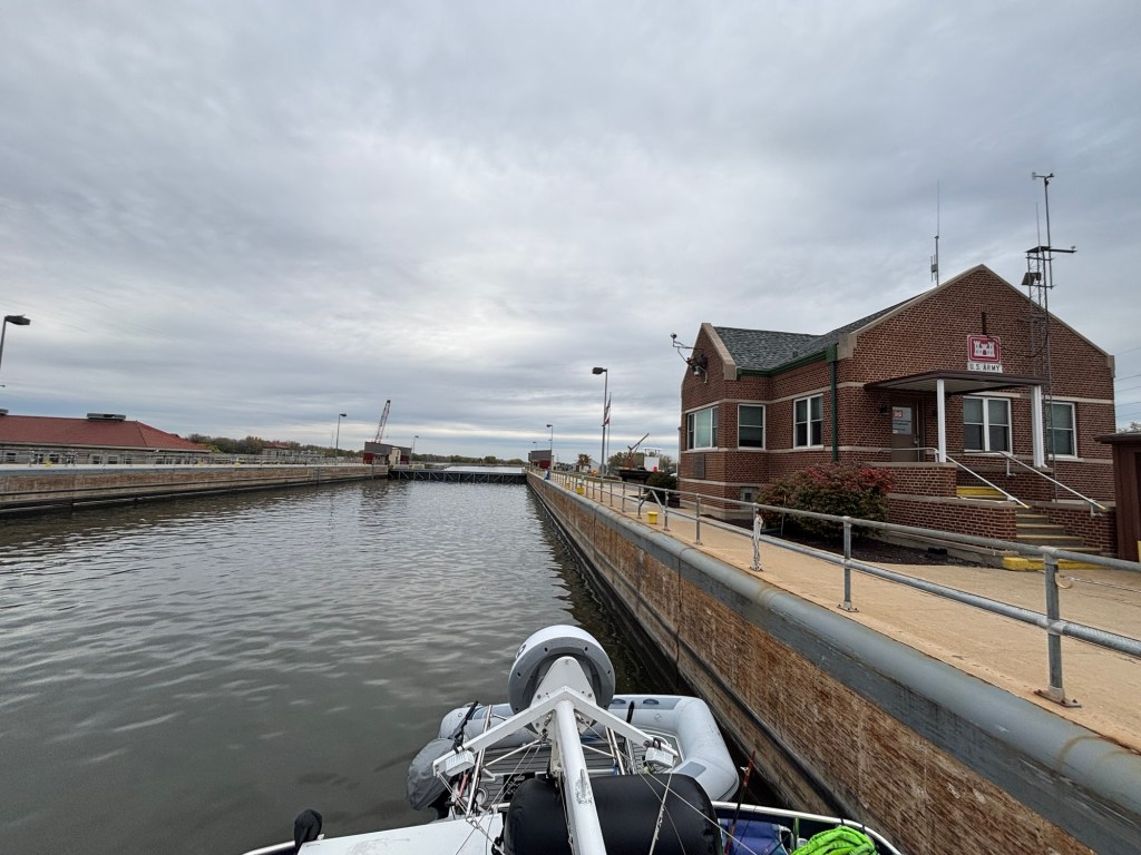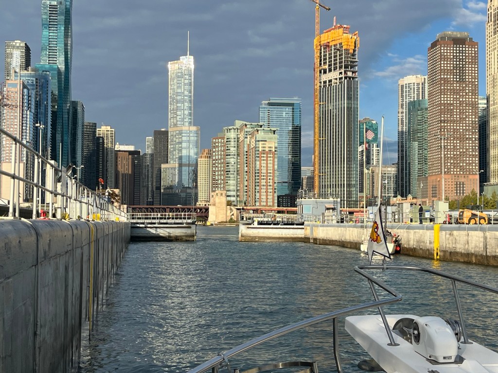 Blues Brothers here we come! Two lock on this journey, first one entering the Chicago River. Not much of a lock, seemed like 6”down, but very cool to be in Chicago on the boat.