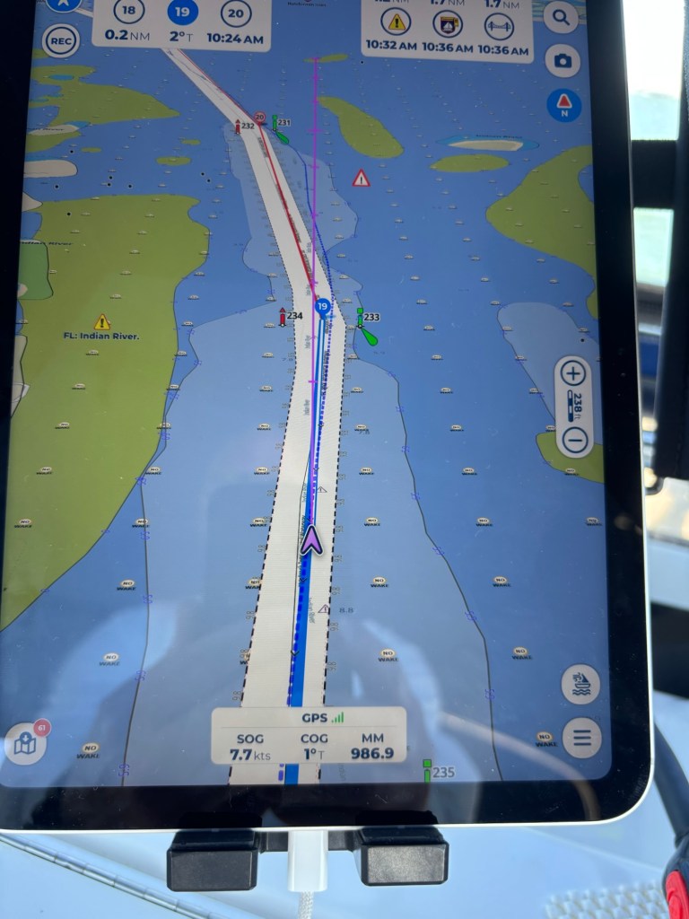 The wind stayed on the nose and a okay ride into Fort Pierce. Went out to dinner with friends from our buddy boat. Had a nice meal and great conversation!