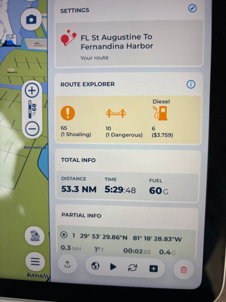 Crossing our wake at Fernandina Harbor Marina